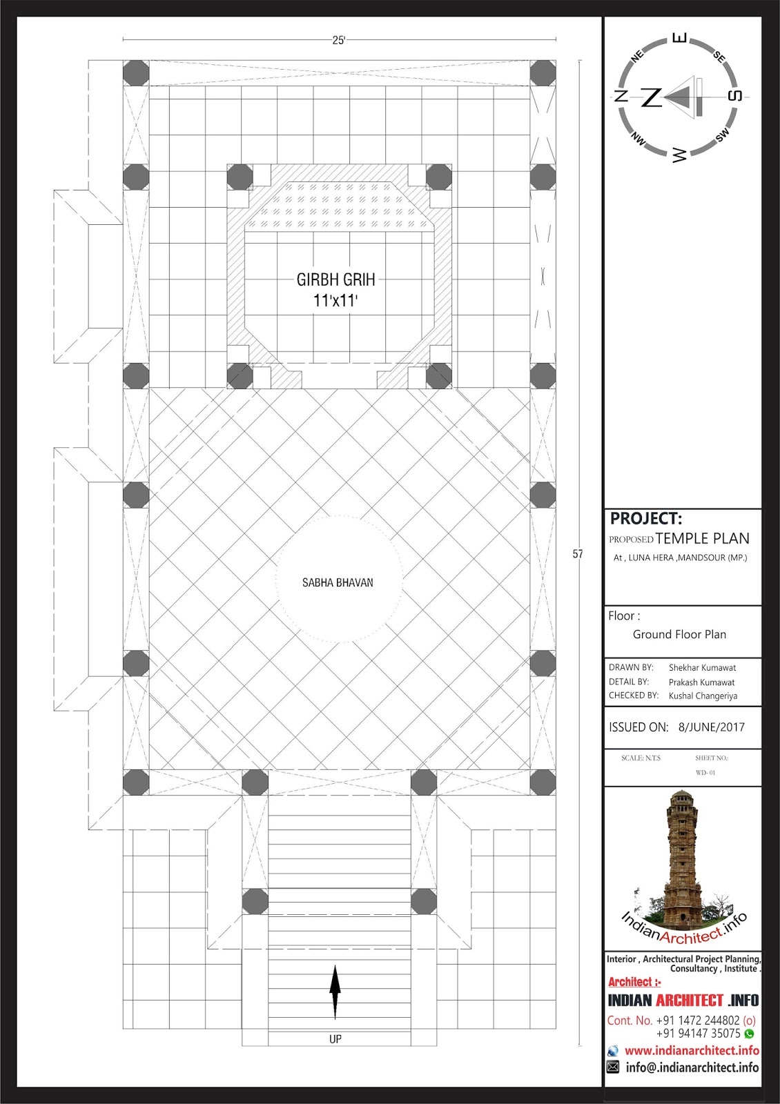 Blog: https://www.indianarchitect.info/2017/06/charbhuja-temple-25x57.html